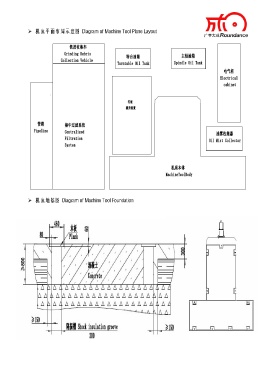 ¾ 机床平面布局示意图 Diagram of Machine Tool Plane Layout ¾ 机床地基图 Diagram of Machine Tool Foundation